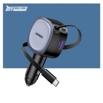 75W Max Ultra-Compact Type-C Fast Car Charger with Built-In Retractable Cable Car Adapter for iPhone 15/14 Series, Samsung S24/S23, MacBookPro/Air, iPad, and More
