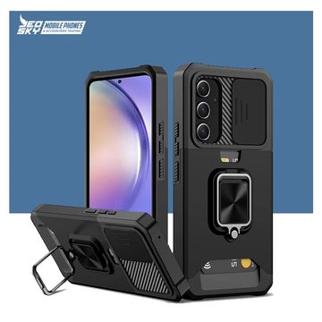 Case with Slide Camera Cover and 360° Rotate Ring Kickstand Heavy Duty Protective Phone Case for Samsung A54 Cover-Black